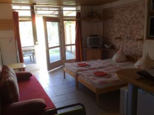 Im Wohn-/Schlafraum steht ein Doppelbett für 2 Personen.
